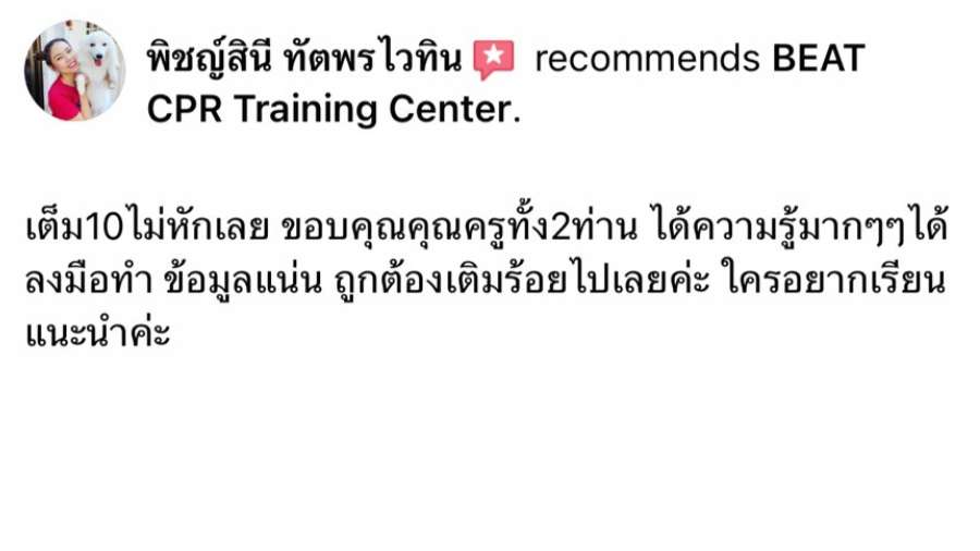 เราตั้งใจเป็นอย่างยิ่งที่จะมอบการเรียนรู้ในบรรยากาศสบายๆ ประหนึ่งคนคุ้นเคยเล่าสู่กันฟัง : มาฟังเราเล่าข้อมูลที่เป็นประโยชน์มากมายที่จะทำให้คุณสามารถรับหน้าที่เป็นคนแรกที่จะเข้าช่วยเหลือผู้ป่วยได้อย่างถูกต้องและมั่นใจ I แล้วเอาความรู้มาลงมือฝึกๆๆด้วยกันจนกว่าจะคล่อง I ฝึกเสร็จมารวมกลุ่มช่วยกันคิดว่าในแต่ละสถานการณ์ตัวอย่างที่เรายกมาทุกคนจะช่วยเหลือยังไงได้บ้าง อะไรทำแล้วดี อะไรที่ห้ามทำ I ที่สำคัญคือหลักคิดในแต่ละสถานการณ์คืออะไร I ปิดจบด้วยการสอบเพื่อให้แน่ใจว่าทุกคนทำได้จริงๆ ไม่ค้างคาหรือสงสัยในเรื่องใดๆก่อนกลับไป..