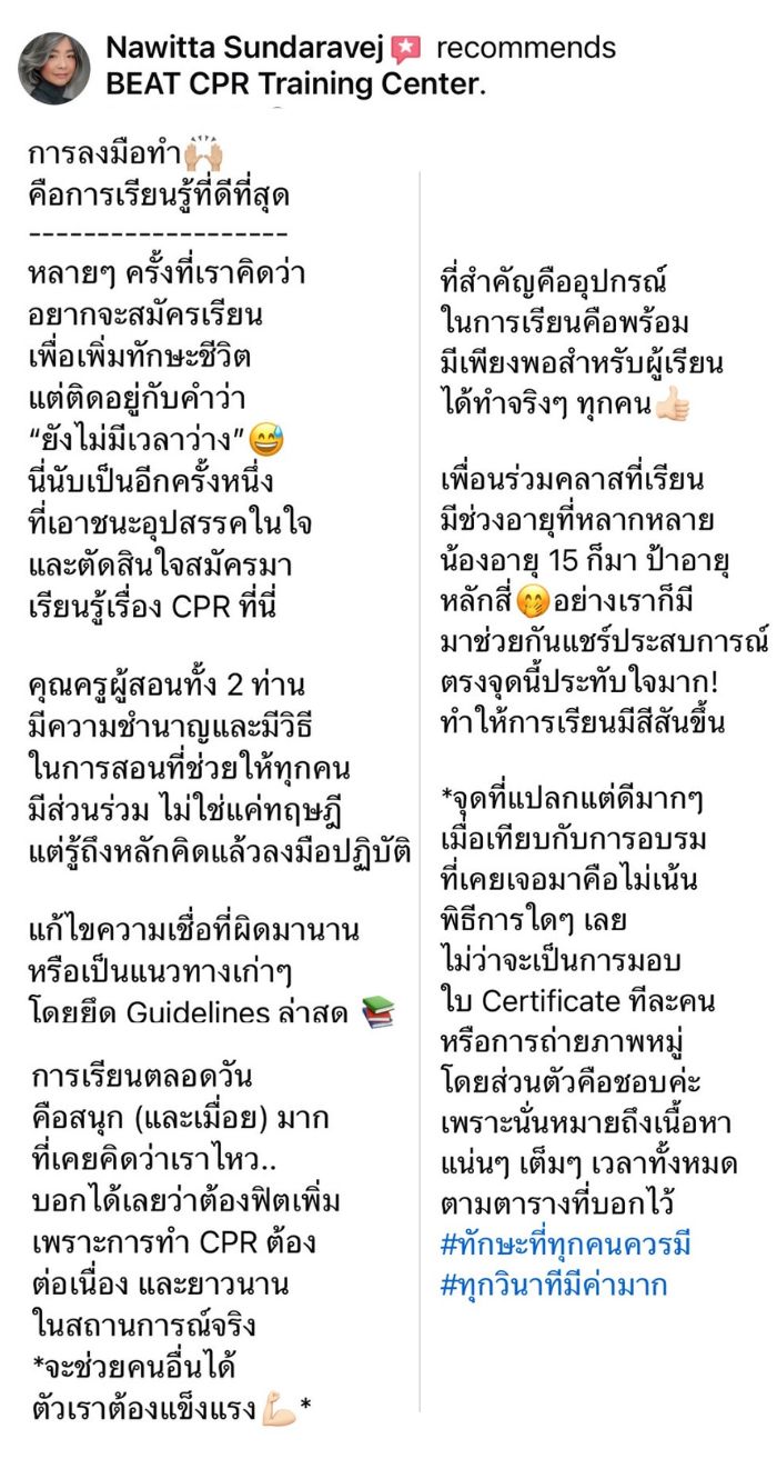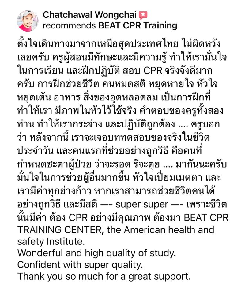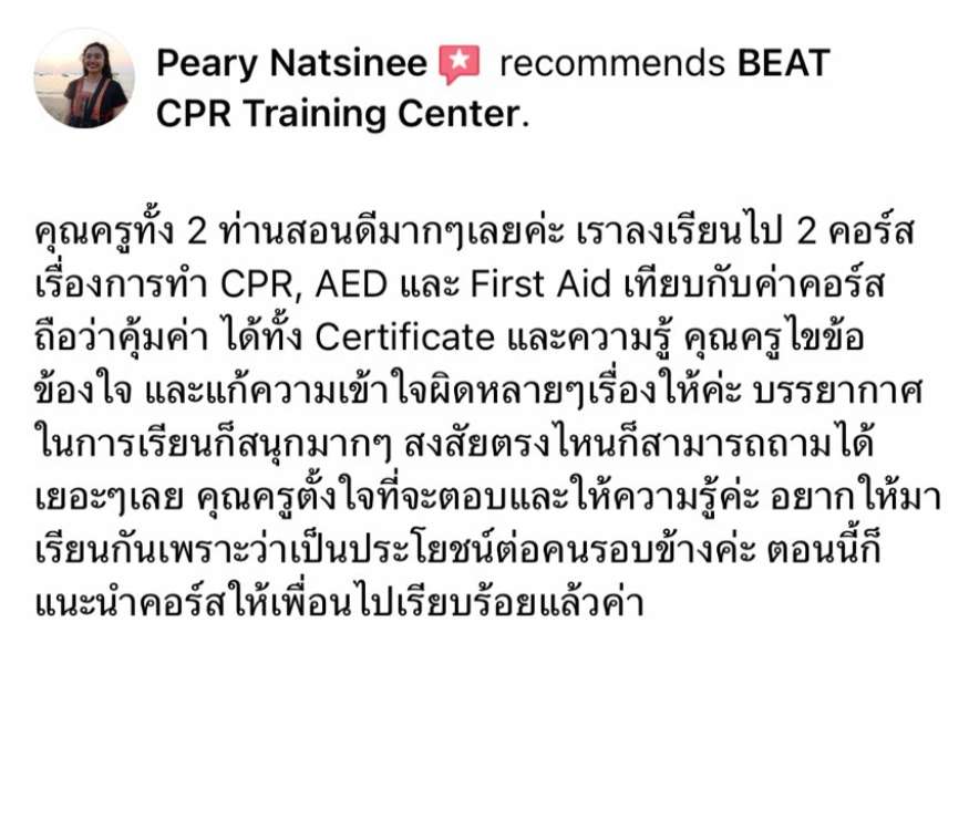 Certificate BEAT CPR Training Center : ท่านละ 3,000 บาทค่ะ