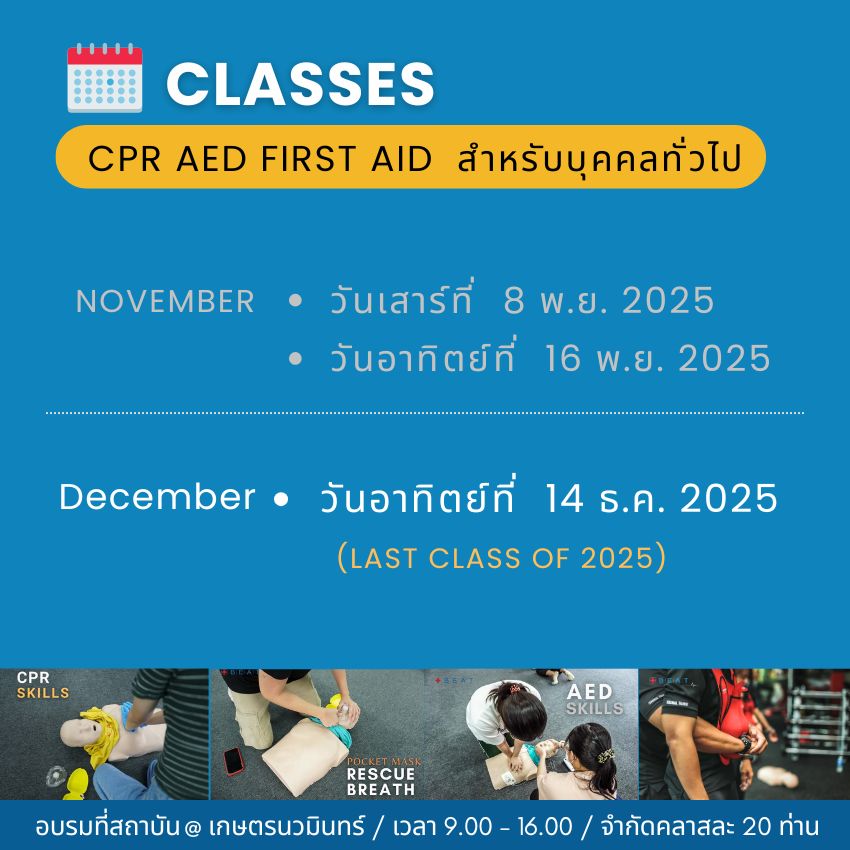 · ผู้เรียนที่สอบผ่านจะได้รับ CERTIFICATE “CPR, AED and Basic First Aid” ของ BEAT CPR TRAINING CENTER
